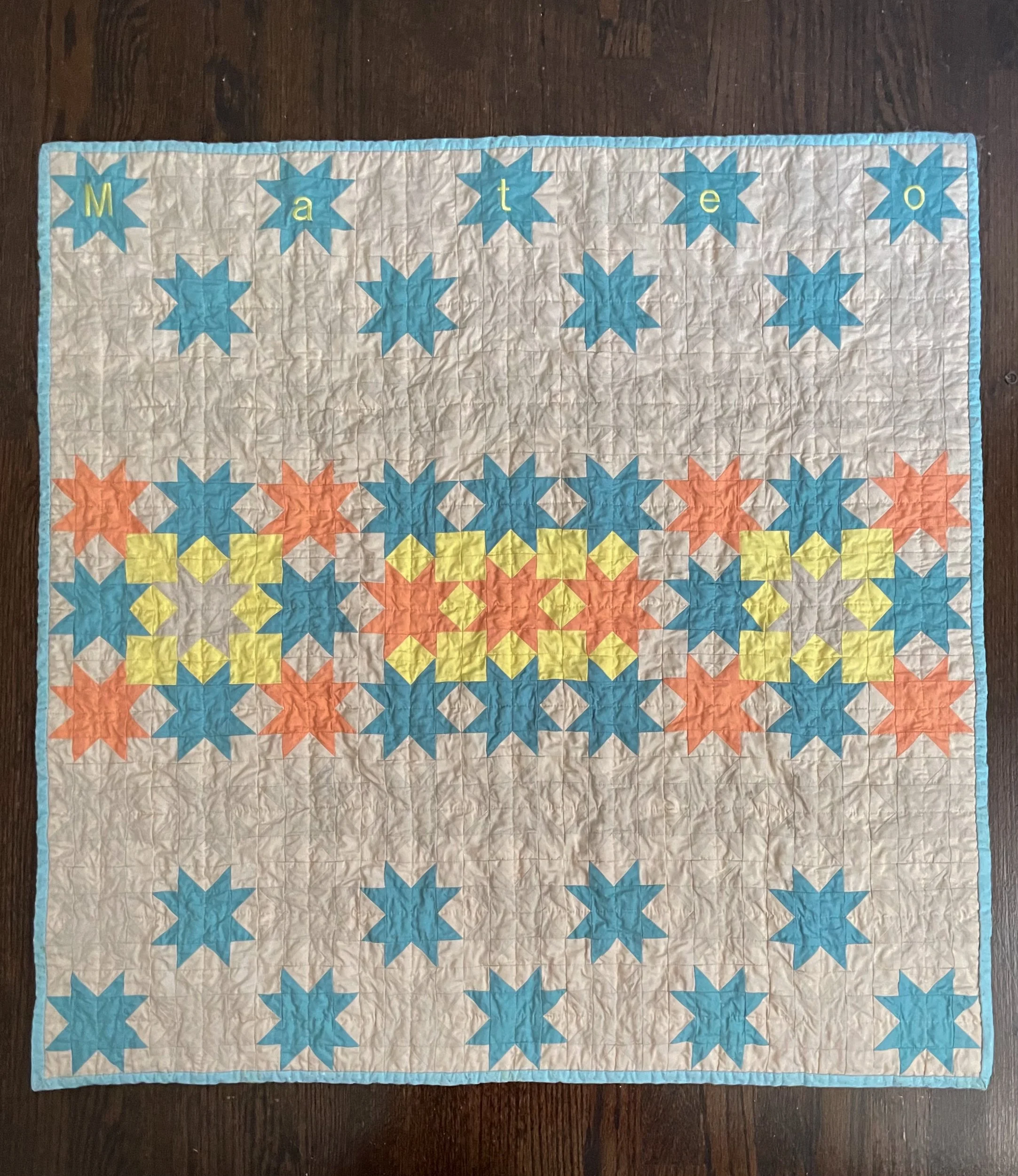 Custom Quilt for Mateo. Pattern design by Everyday Zoé. 36 x 32